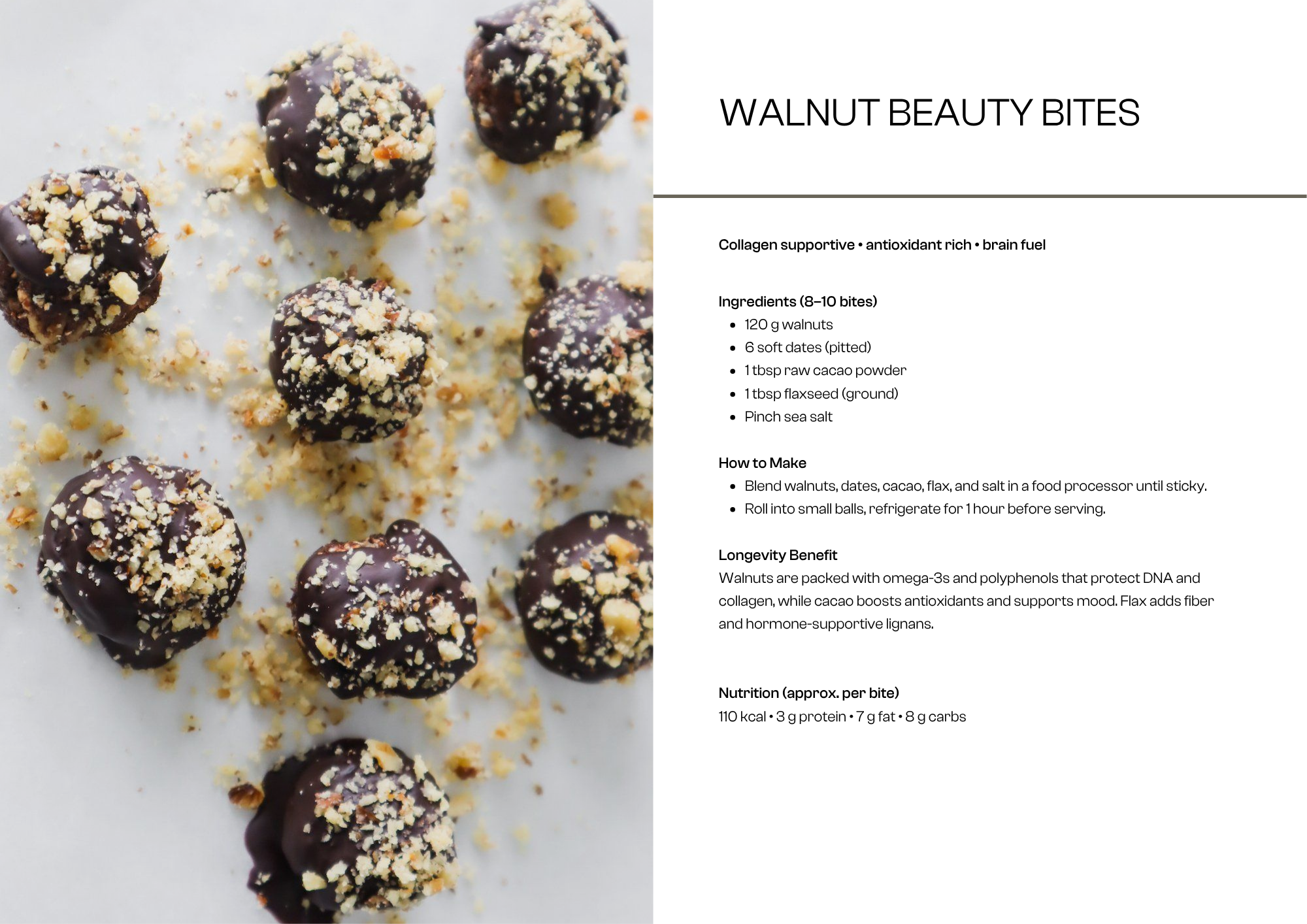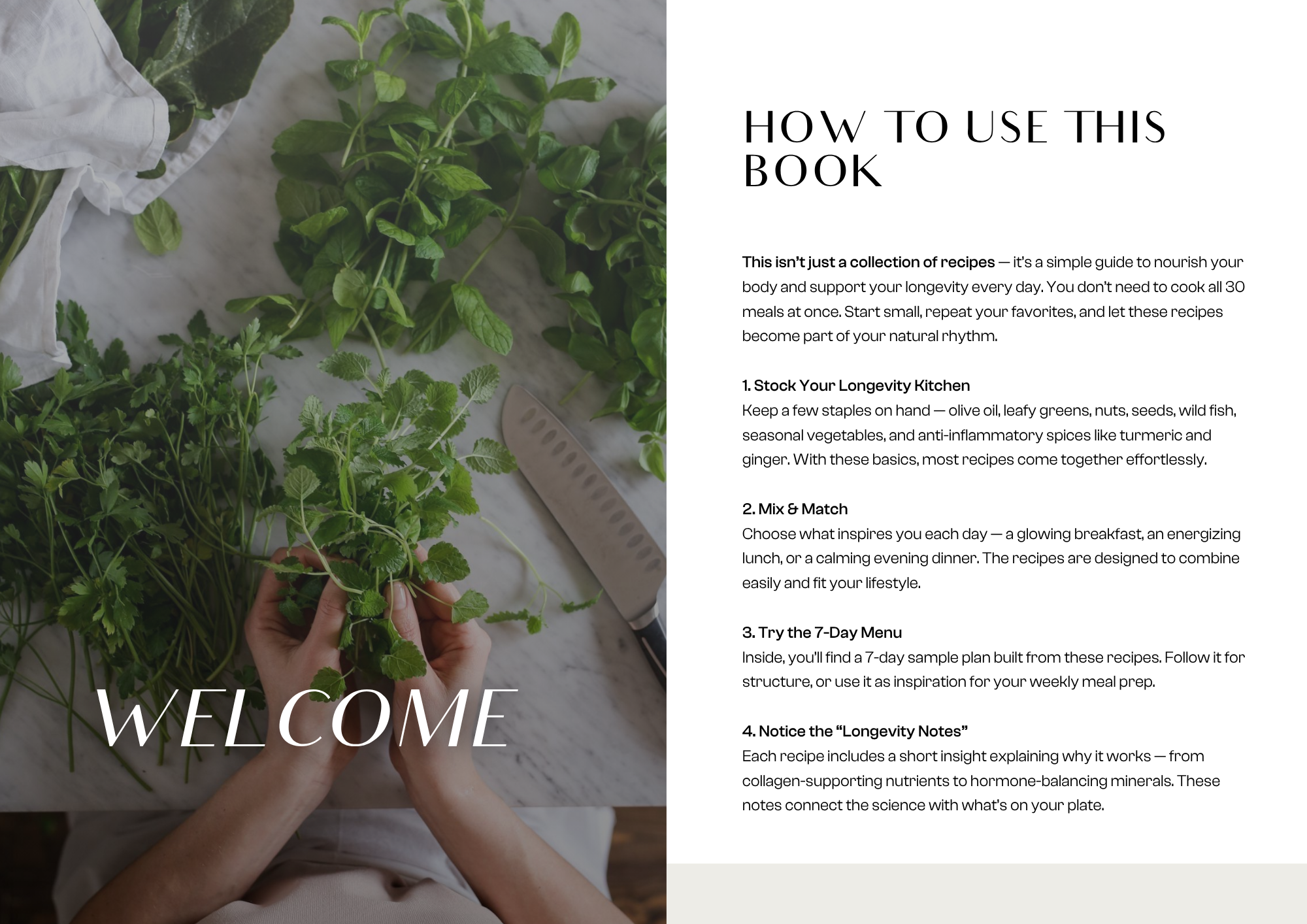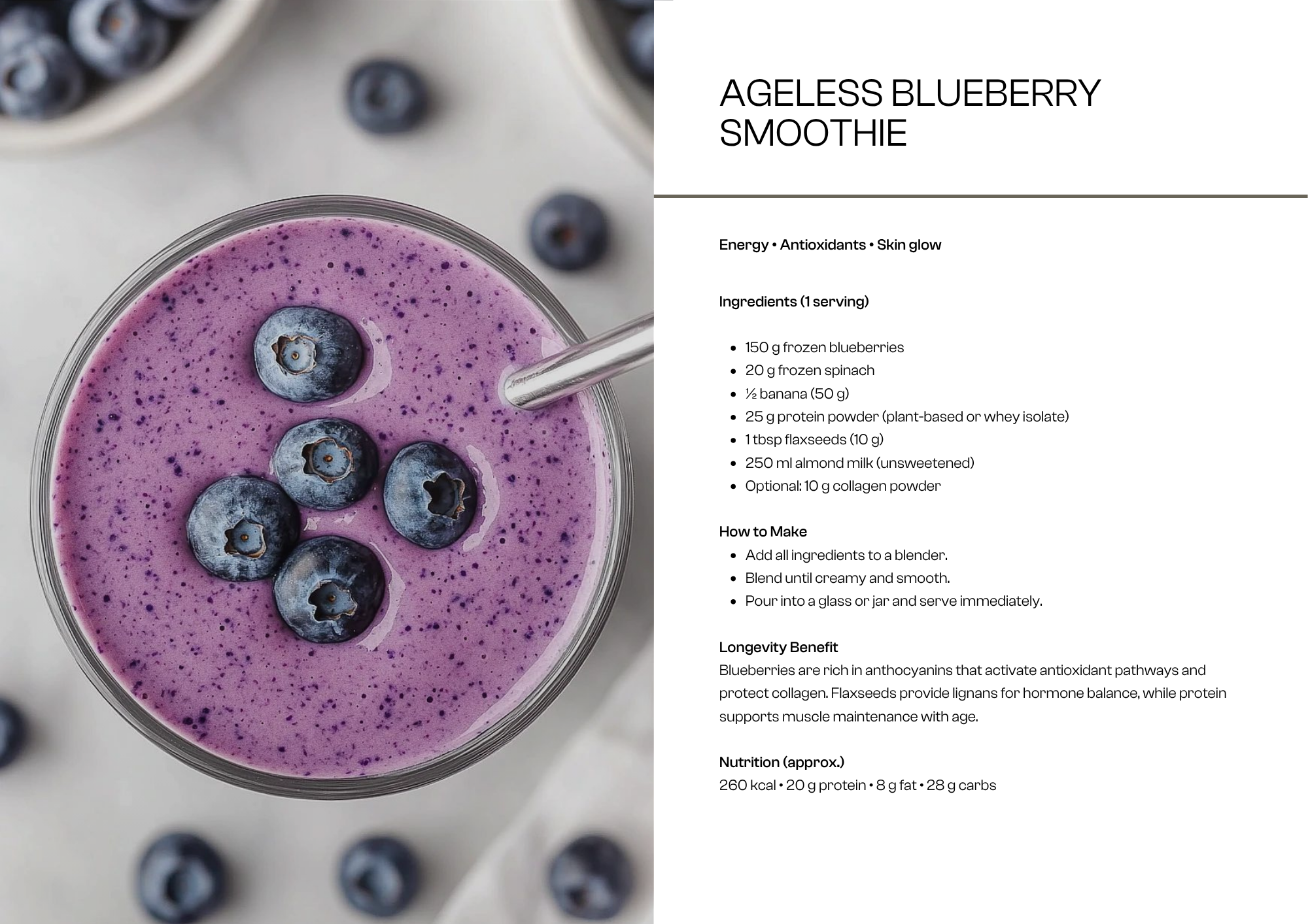 Each recipe is built on longevity research — designed to reduce inflammation, support hormone balance, and fuel cellular repair.