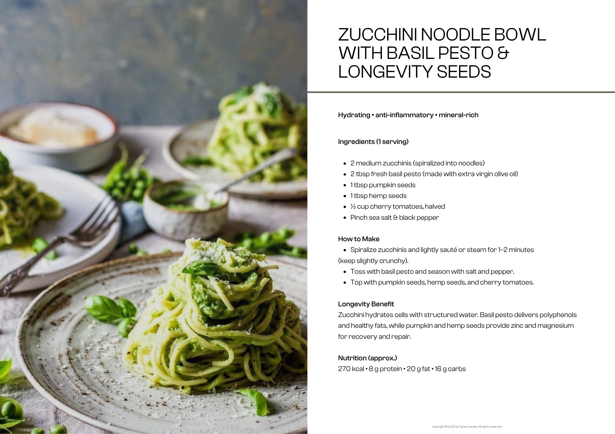 Developed by Agnes Sander, Nutritionist & Longevity Strategist, with a background in functional nutrition, genetics, and cellular health.